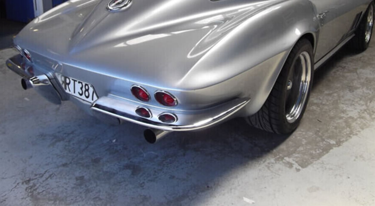 The build brief for Daves Corvette was - it had to be road legal & suitable for drag, circuit & Targa racing. He also wanted to be able to run the car unassisted by battery voltage, so the car runs a mechanically injected 410 cu-in sprintcar engine with a magneto for ignition, if required, you could just push-start the car & away it would go. It runs 6 pot & 4 pot Wilwood brakes, an adjustable pedal box, a Jerico dog-type race gearbox with a triple plate clutch & an LSD. I ran the cars front & rear suspension through my suspension analysis program & reconfigured the front & rear suspension to get rid of all the nasty inherent problems they have, as well as fitting electric rack & pinion type steering. The car has a full Motorsport NZ homologated chrome-moly roll cage, runs on av-gas & is a VERY fast, fun little car.