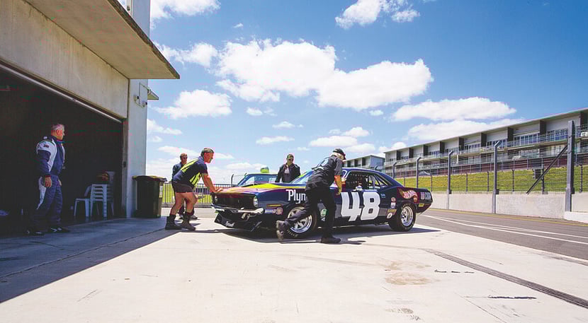 This is Keith Sinclairs Hemi Barracuda racecar. Keith, a tender 73 year old, races it in the Historic Musclecar & Northern Musclecar series. Sonic built this car from an acid dipped bare shell to the car you see in the pics. Keith was involved through out the build & continues to race at every opportunity.